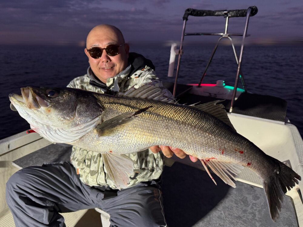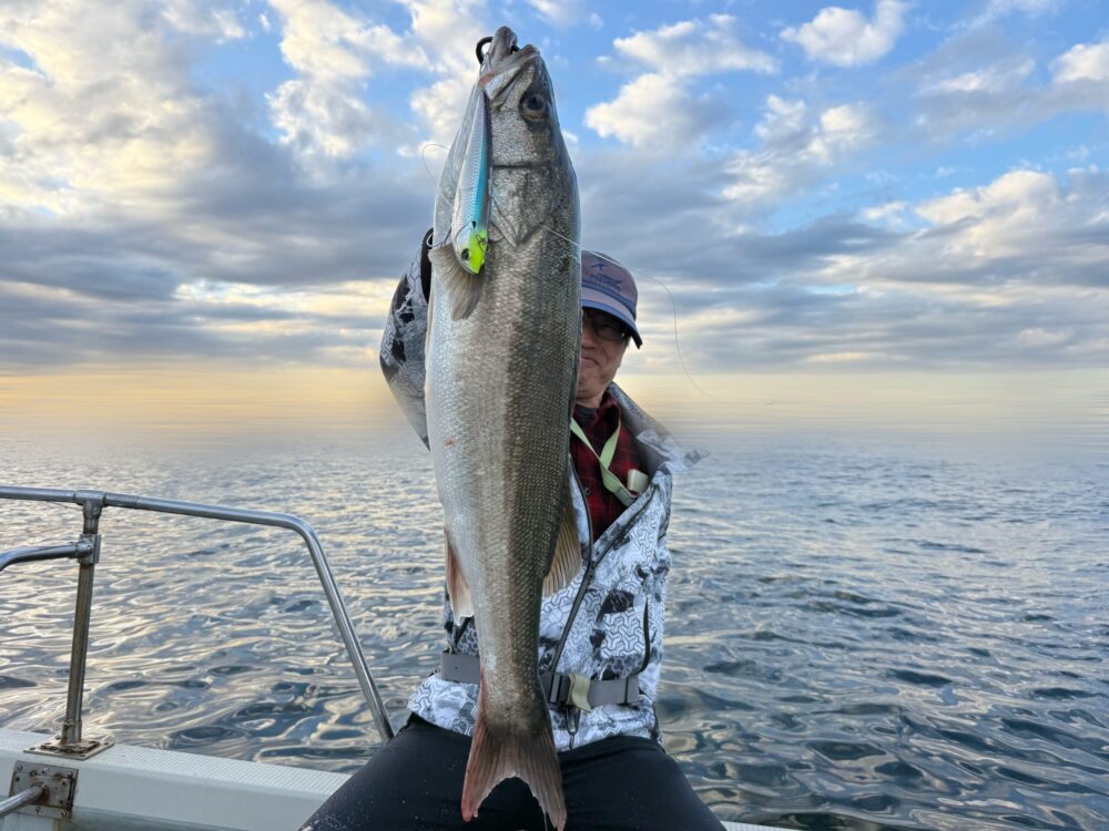 夕マヅメを捉えて83㎝の極太ランカーキャッチ